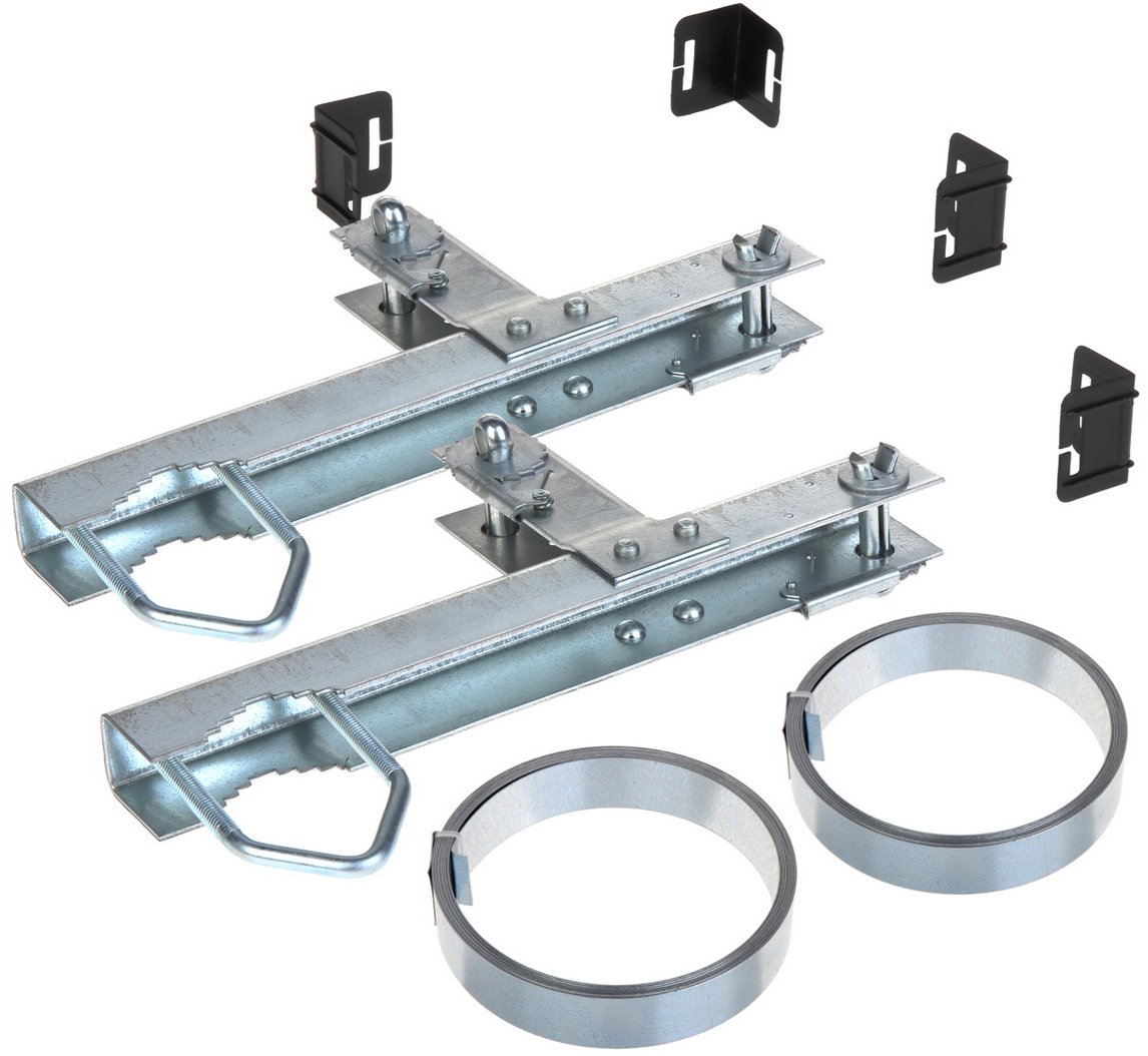 The professional chimney clamp is the ideal solution for installing an antenna mast where a traditional wall mount cannot be used. Thanks to the fastening system using steel straps around the chimney, it allows for non-invasive installation without drilling, thereby protecting the chimney structure from damage. The well-thought-out mechanism ensures a strong and stable connection that can withstand wind and long-term loads. The simple adjustment of the clamp contributes to quick assembly and disassembly, which will be appreciated by professional installers as well as demanding users.