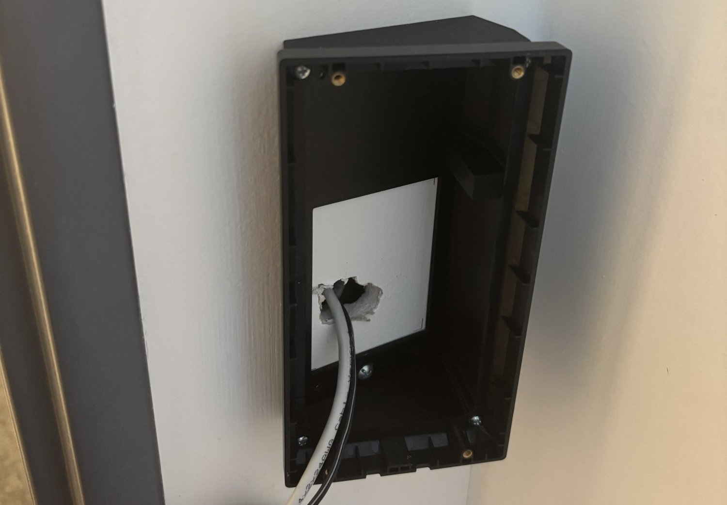 The elegant wall mount with a tilt angle of 19° ensures the ideal viewing angle for Hikvision IP video intercoms and enhances comfort during everyday use. It is designed for indoor wall installation and is compatible with selected models of the DS-KV8x13 series. The durable ABS plastic in standard black color appears discreet and modern, while its low weight and compact dimensions allow for easy installation. The precise design supports stable mounting and long-term reliability.