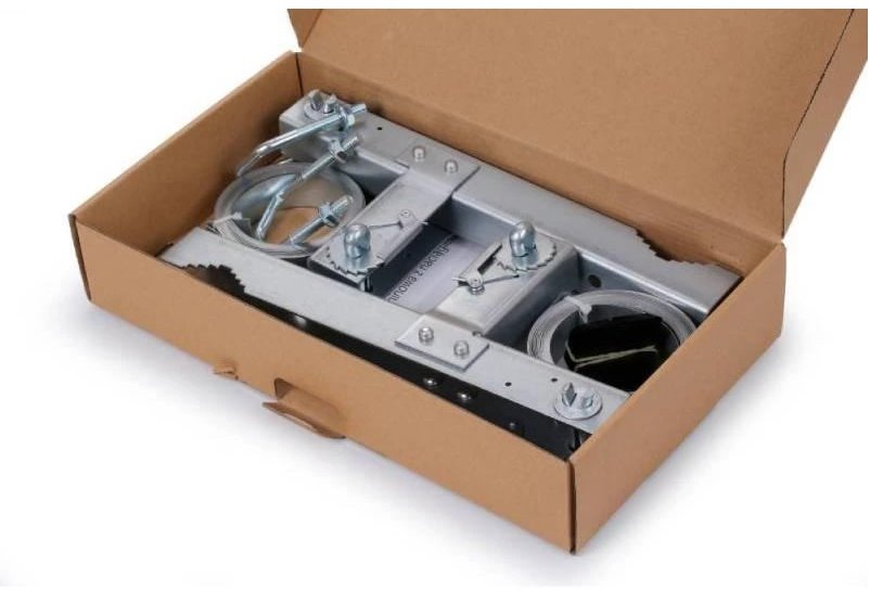 The professional chimney clamp is the ideal solution for installing an antenna mast where a traditional wall mount cannot be used. Thanks to the fastening system using steel straps around the chimney, it allows for non-invasive installation without drilling, thereby protecting the chimney structure from damage. The well-thought-out mechanism ensures a strong and stable connection that can withstand wind and long-term loads. The simple adjustment of the clamp contributes to quick assembly and disassembly, which will be appreciated by professional installers as well as demanding users.